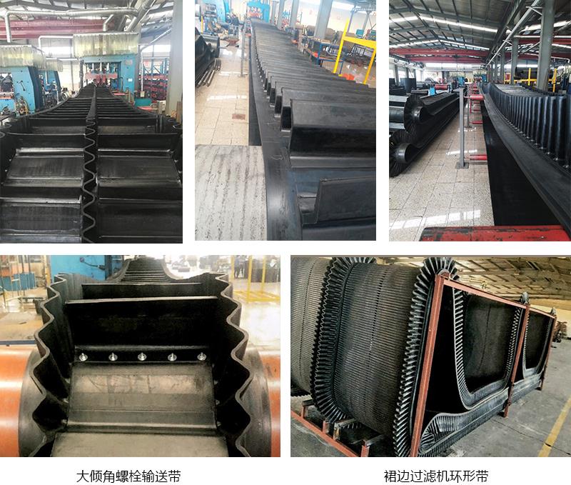 波狀擋邊輸送帶要求一定的抗拉強度和耐磨性。為了適應(yīng)角度的變化,膠帶的縱向要求是柔性的,而橫向要求是剛性的。我公司生產(chǎn)的輸送帶采用特殊結(jié)構(gòu)的橫向剛性基帶,解決了大型輸送帶在回程時的塌帶現(xiàn)象。